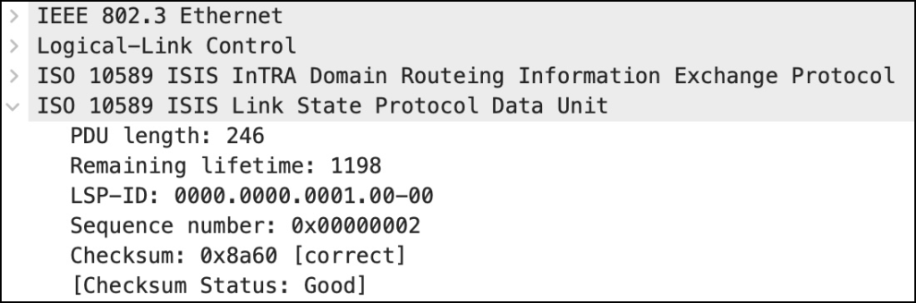 Начнём с заголовка LSP. Каждое сообщение имеет собственный небольшой заголовок дополнительно к «основному» заголовку IS-IS.