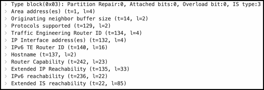Причина в том, что сообщения IS-IS довольно гибкие — информация в LSP или любом другом сообщении не должна быть в определённом порядке, и информация даже не обязательно должна пониматься принимающим маршрутизатором!