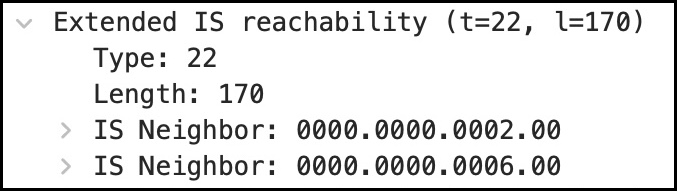 Когда пакет генерировался, у R1 было соседство IS-IS только с R2. В обновлённой версии Link-State PDU R1 упоминается подключение к двум маршрутизаторам (помните, что IS-IS называет маршрутизатор «промежуточной системой»):